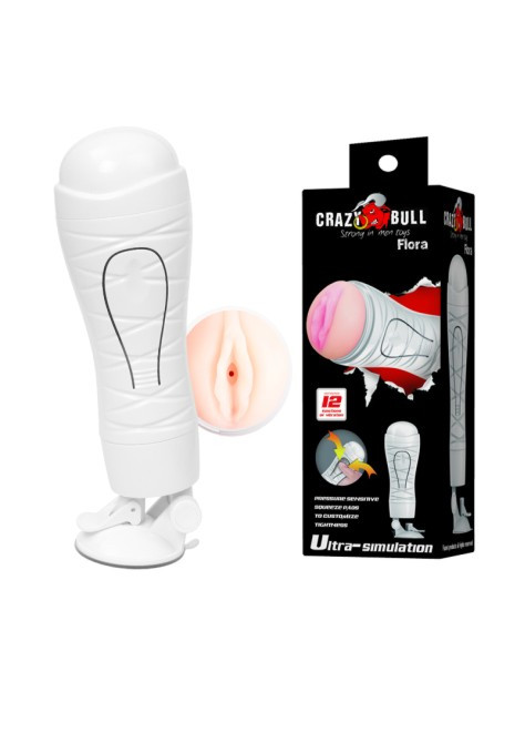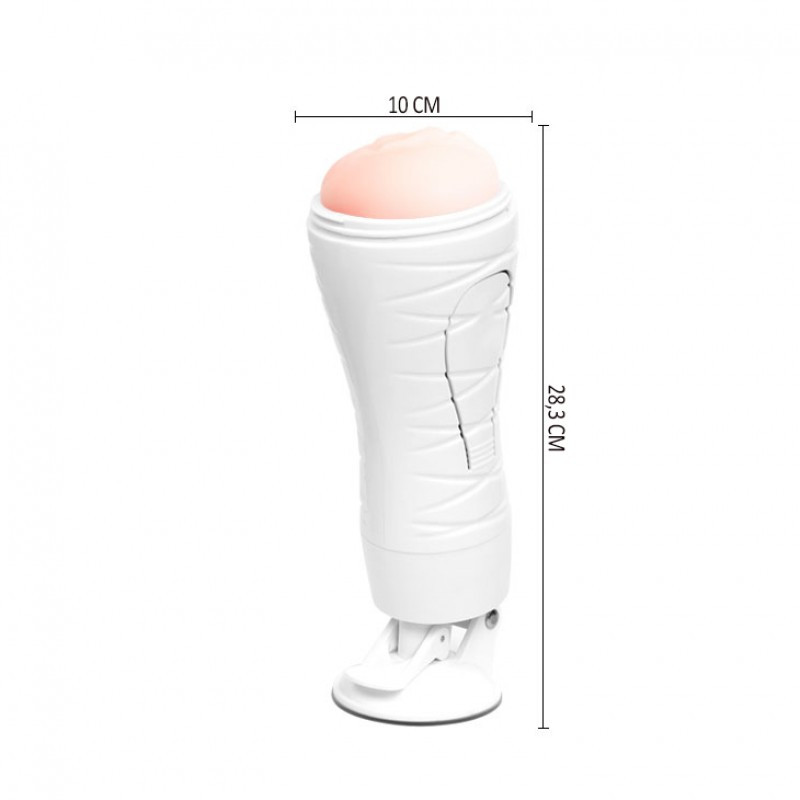 Masturbador formato lanterna com ventosa de pressão articulável, até 90 gruas, masturbador interno vagina em Cyberskin, possui 12 modos de vibração. RECARREGÁVEL.